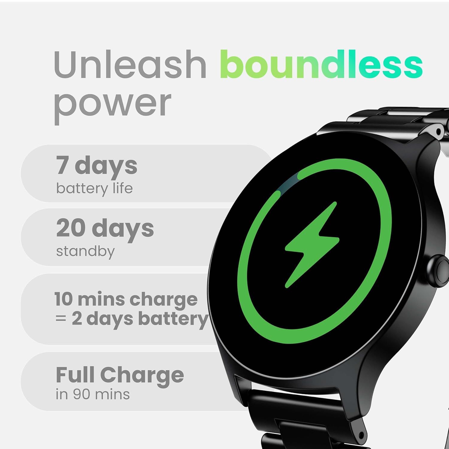 Boult Trail Pro Smartwatch with Bluetooth Calling 5.2, 1.43″ AMOLED Display, 7 Days Battery Life, 150+ Watch Faces, Complete Health Monitor, 120+ Sports Mode, IP68, Fast Charging