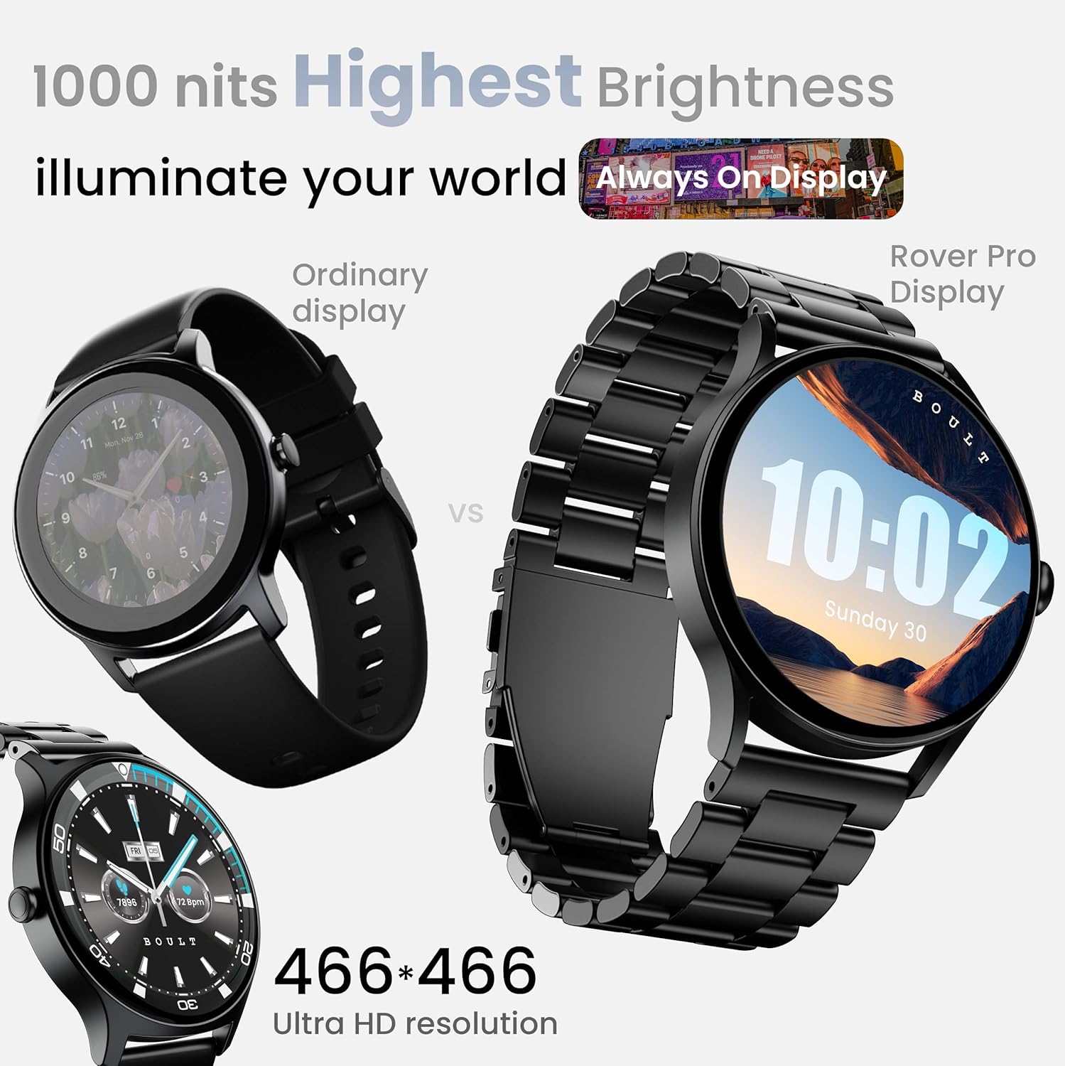 ✅1.43” AMOLED Display with 1000 Nits Brightness: Enjoy ultra-clear visuals on a 1.43” AMOLED display with 1000 nits of brightness for vibrant, daylight-readable clarity. Always-on display mode enhances visibility at all times, making it one of the best AMOLED display smart watches for women and men.