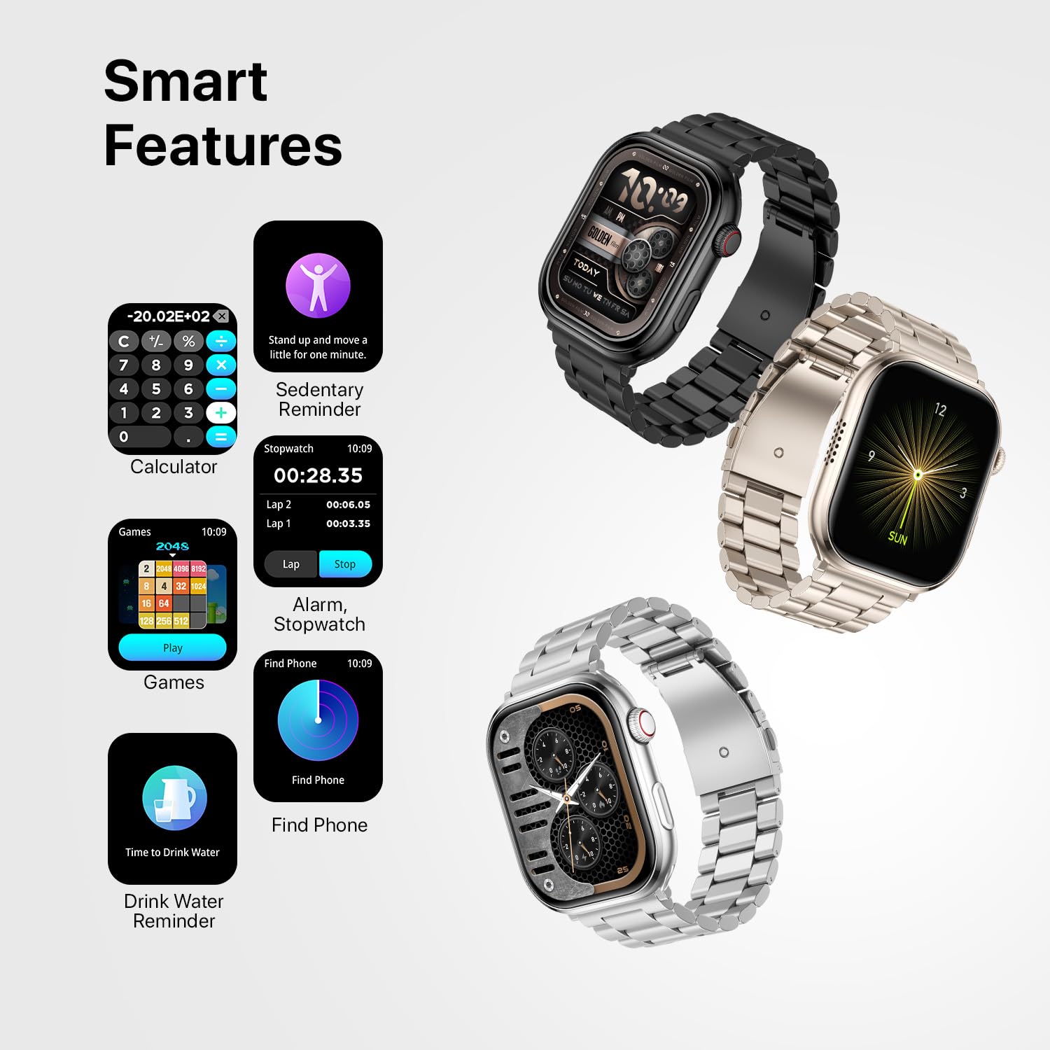 Chain-Style Stainless Steel Strap: Exuding classic elegance, this strap features a durable chain-link design that adds a premium, timeless touch to your smartwatch.