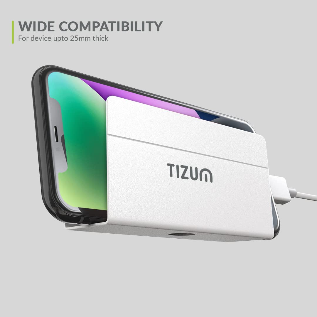 Tizum Wall Hanging Mobile Holder Stand, Charging Holder with Adhesive Strips Compatible with iPhones, Smartphones and Mini Tablet, Mobile Phone Organizer Stand, Storage Case for Remote