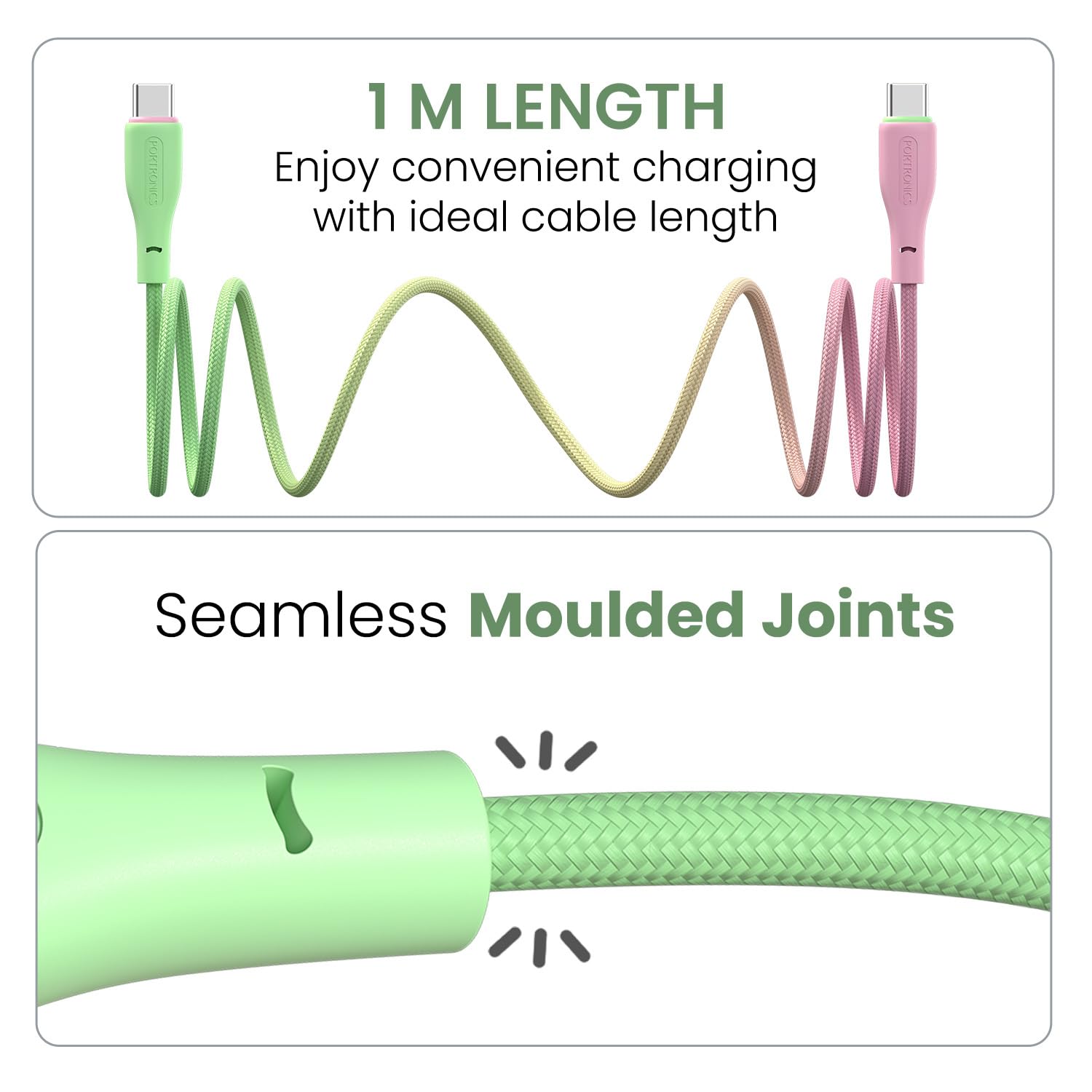 Experience fast charging and high-speed data transfer with this Dual Tone Type-C to Type-C Cable, designed for seamless compatibility with MacBook, iPad Pro, Samsung Galaxy, Google Pixel, and other USB-C devices. Supporting 60W Power Delivery (PD 3.0), this cable enables rapid charging for laptops, tablets, and smartphones. With 480Mbps data sync speed, transfer files, music, and videos effortlessly. Built with a strong nylon-braided exterior, it offers tangle-free durability, ensuring long-lasting performance. The 1M (3.3ft) length provides the perfect balance of flexibility and reach for everyday use at home, in the office, or while traveling. Featuring a modern dual-tone color design, this cable adds a stylish touch to your tech accessories. Equipped with an E-Marker chip for enhanced safety, it protects devices from overcurrent, overheating, and short circuits, ensuring stable and reliable charging. Ideal for users seeking a premium, fast-charging, and durable USB-C cable that combines style with functionality.