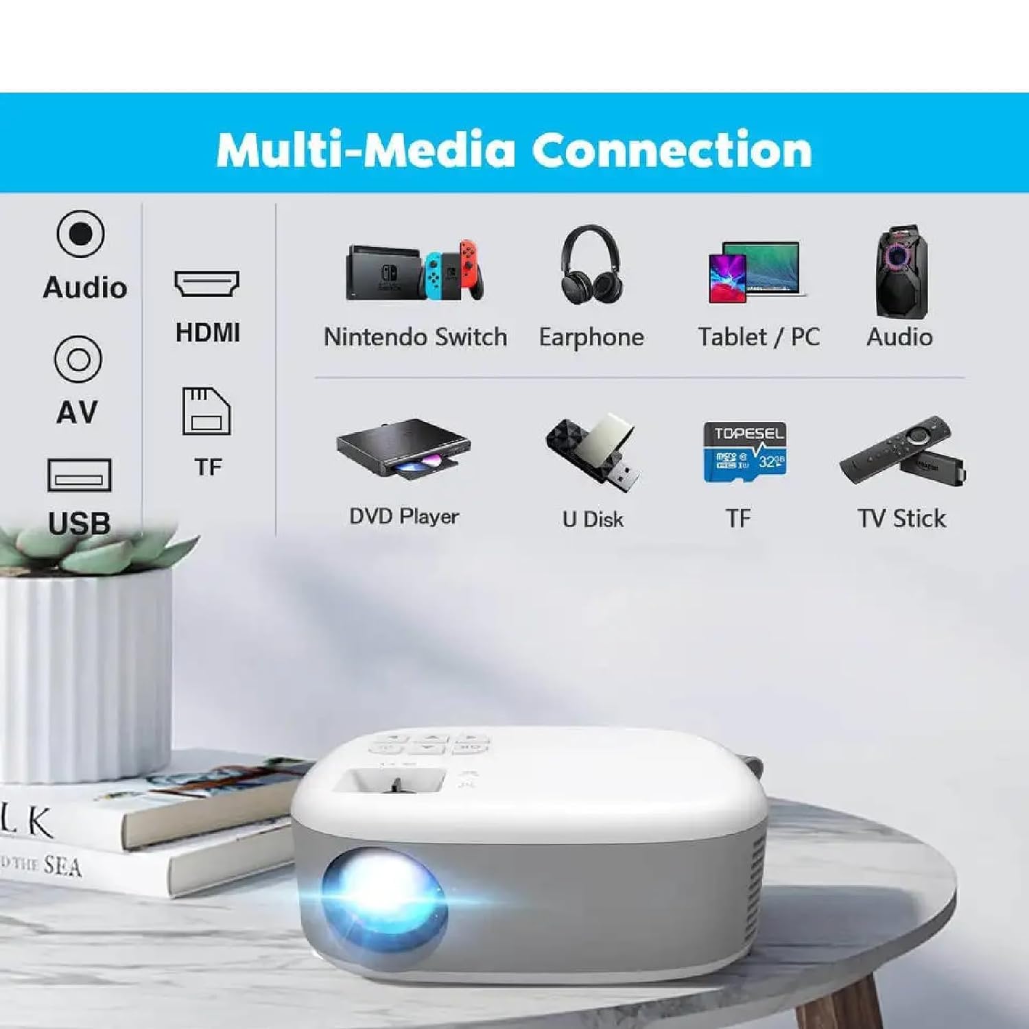 【Wide Application】The portable projector has HDMI, USB, built-in 3.5mm headphone ports (please note that you need to buy the HDMI cable on your own), which is suitable for TV stick/box, game consoles, PC, smartphones, tablets, laptops, DVD players and USB sticks, and so on. Can be used for home theater, party, work and more.