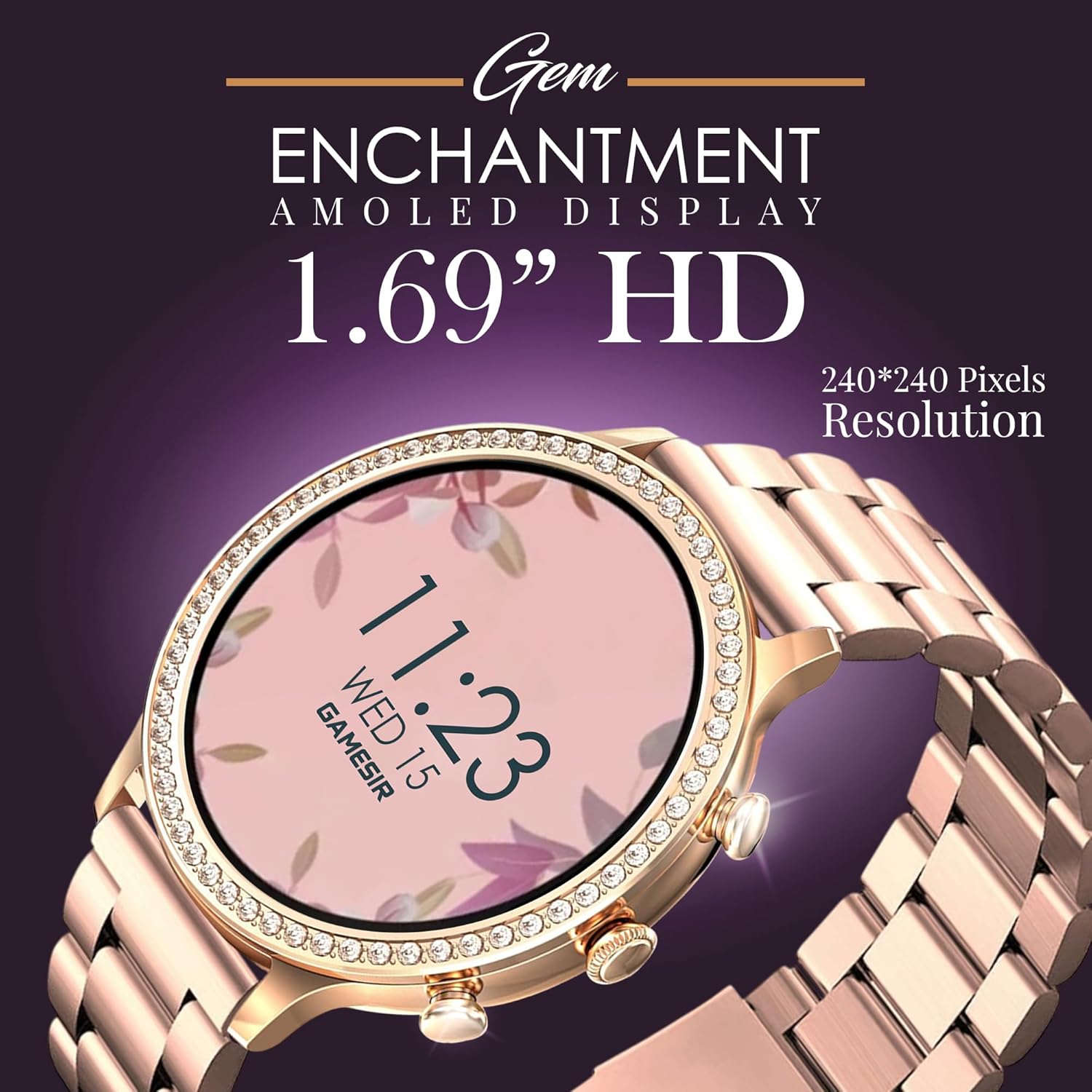 💎 Elegant & Minimalist Design Features a sleek gold finish with a 1.69″ full-touch display and 360×360 high-resolution screen for stunning clarity in both low light and direct sunlight. Lightweight and comfortable—ideal for all-day wear.