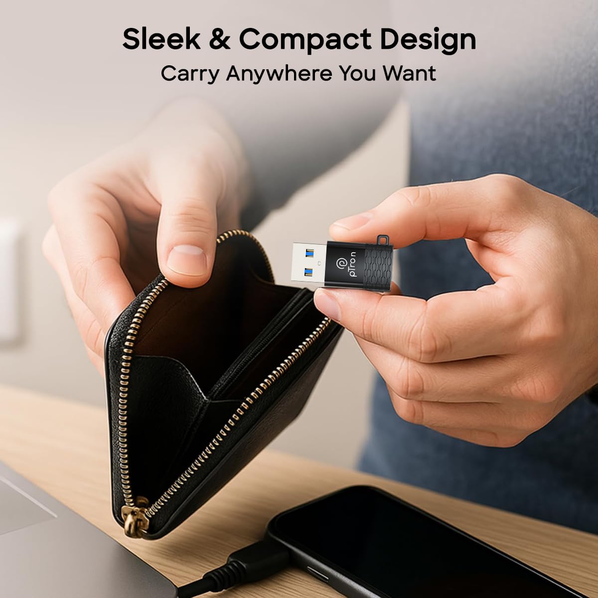 pTron Nexo Type-C to USB-A OTG (On-the-Go) adapter features a sleek, premium look with robust Aluminum Alloy housing for durability & long product life.