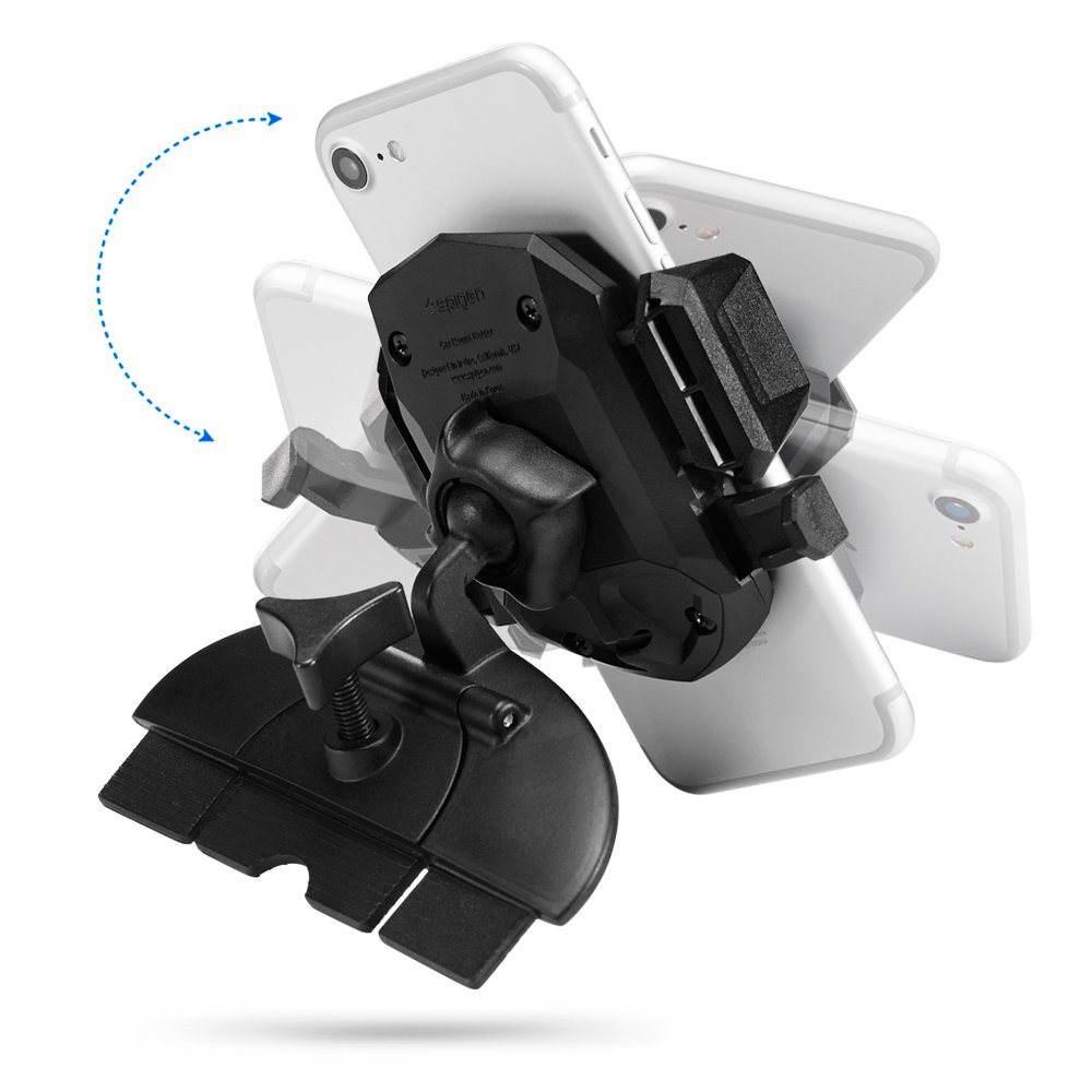 Spigen CD Slot Car Mobile Holder [One Touch][Stable Hold][360° Rotational] compatible with most Smartphone Devices – Black