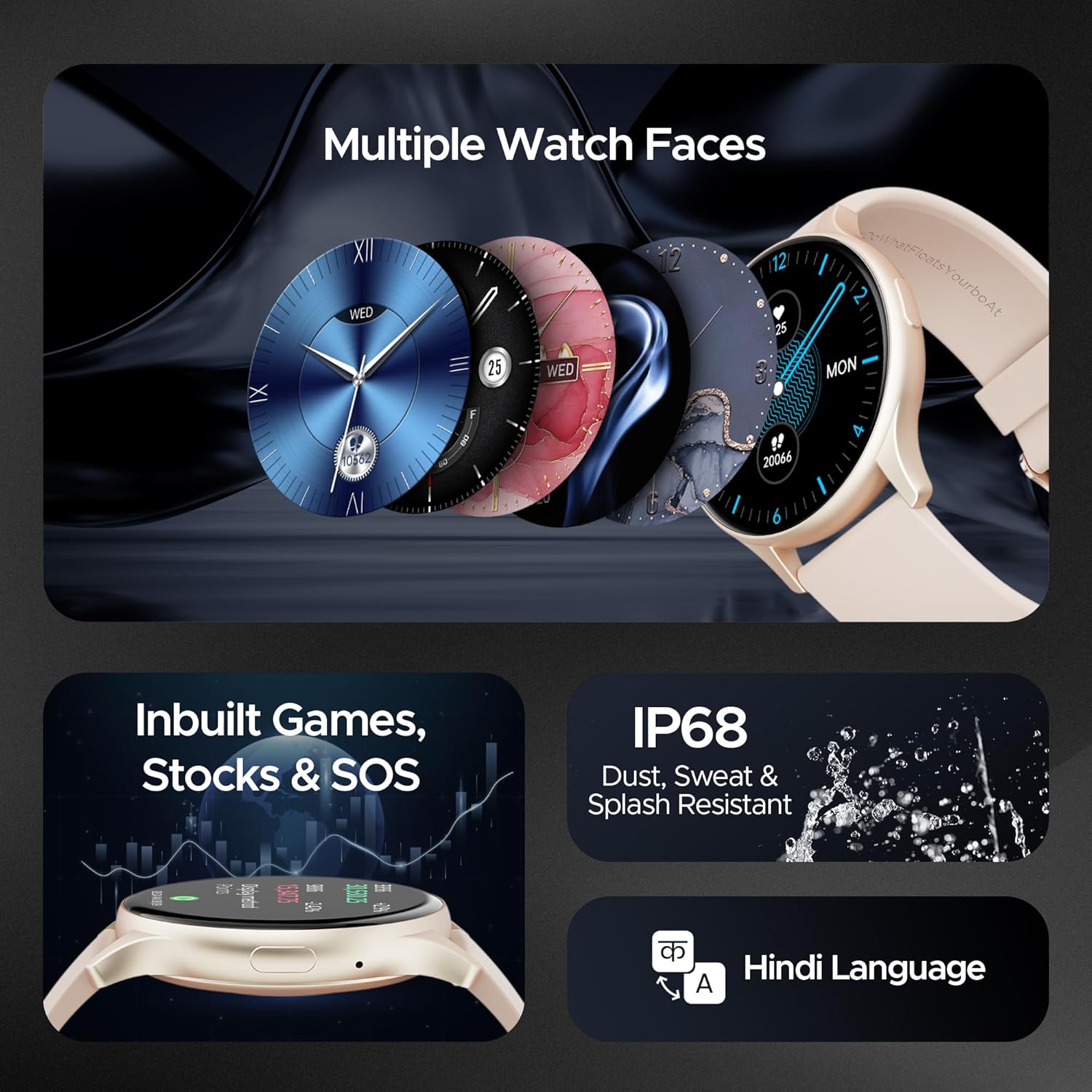 Custom Watch Faces: Personalize your watch with Cloud & Custom Watch Faces, allowing you to match your style and mood.;Entertainment on Your Wrist: Enjoy in-built games that keep you entertained, ensuring your smartwatch is more than just a timepiece.