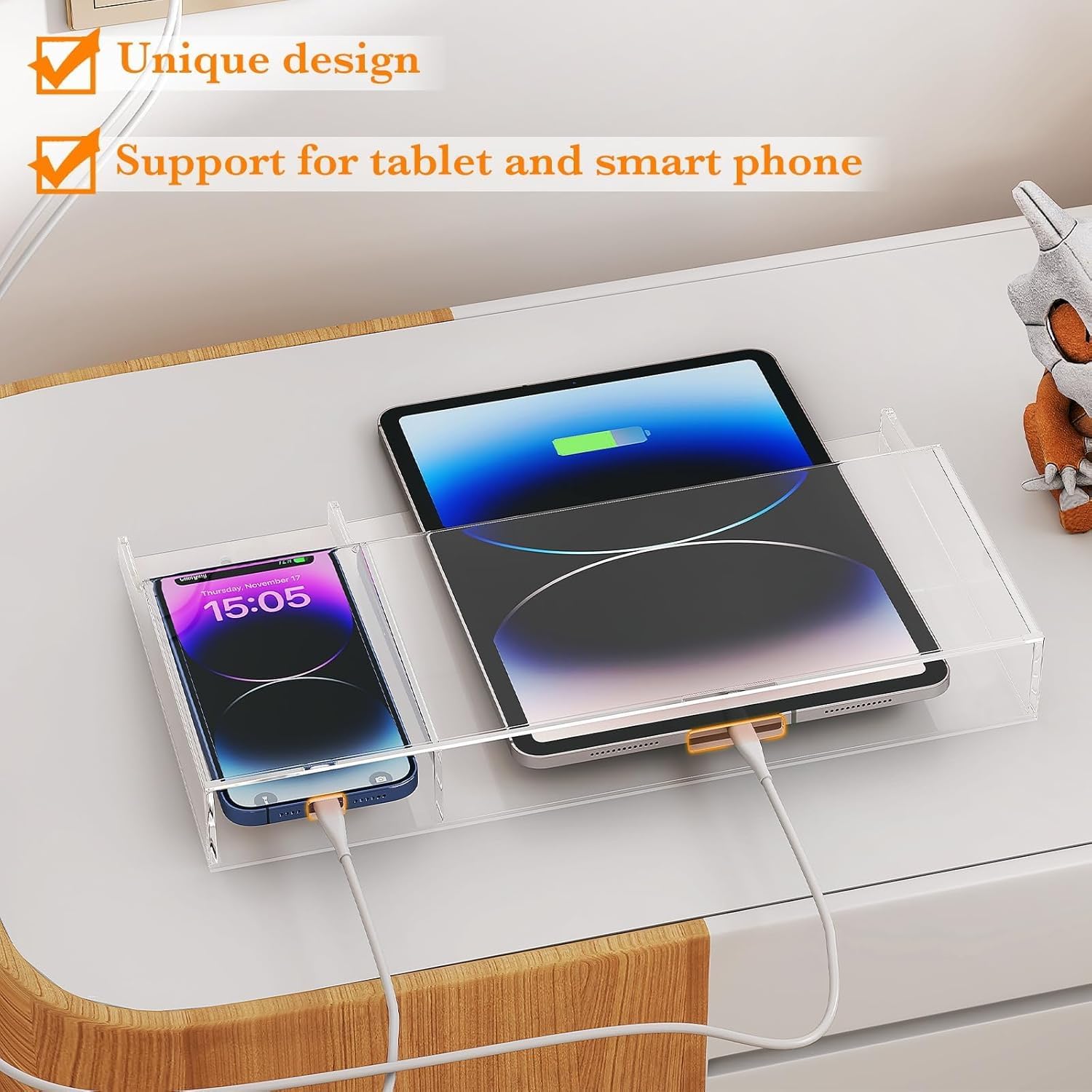 🏠[FASHIONABLE TRANSPARENT DESIGN] — Upgraded Thickness: 5mm, Solid For Durability! Well Crafted With Clear Imported Acrylic Material. This Tablet, eReader, iPad, Kindle, iPhone, Samsung Remote Control Holder Is Transparent To Enable You To View The Items And Devices, Even The Charging Status Of Phones And Tablets Without Taking Out. With The Smooth Finish And Stylish Shape, It Is Pretty Practical But Decorative For Daily Storage Use.